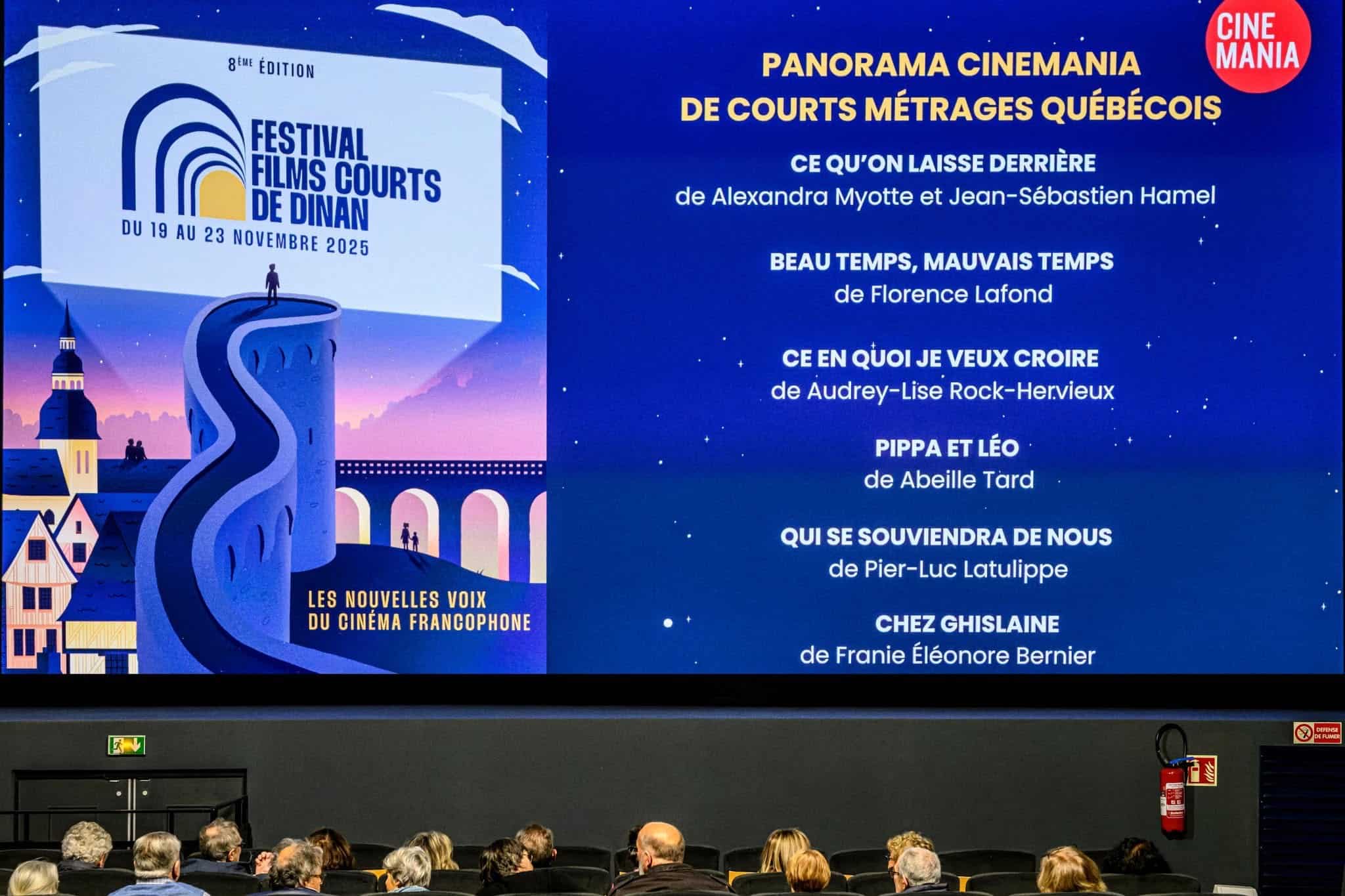 Dans le prolongement de ce partenariat, le Festival Films courts de Dinan a organisé, quelques jours plus tard, une séance exceptionnelle à Émeraude Cinémas Dinard, consacrée à la reprise de la compétition québécoise de courts métrages de CINEMANIA, offrant ainsi au public breton un panorama du meilleur de la création québécoise contemporaine.
